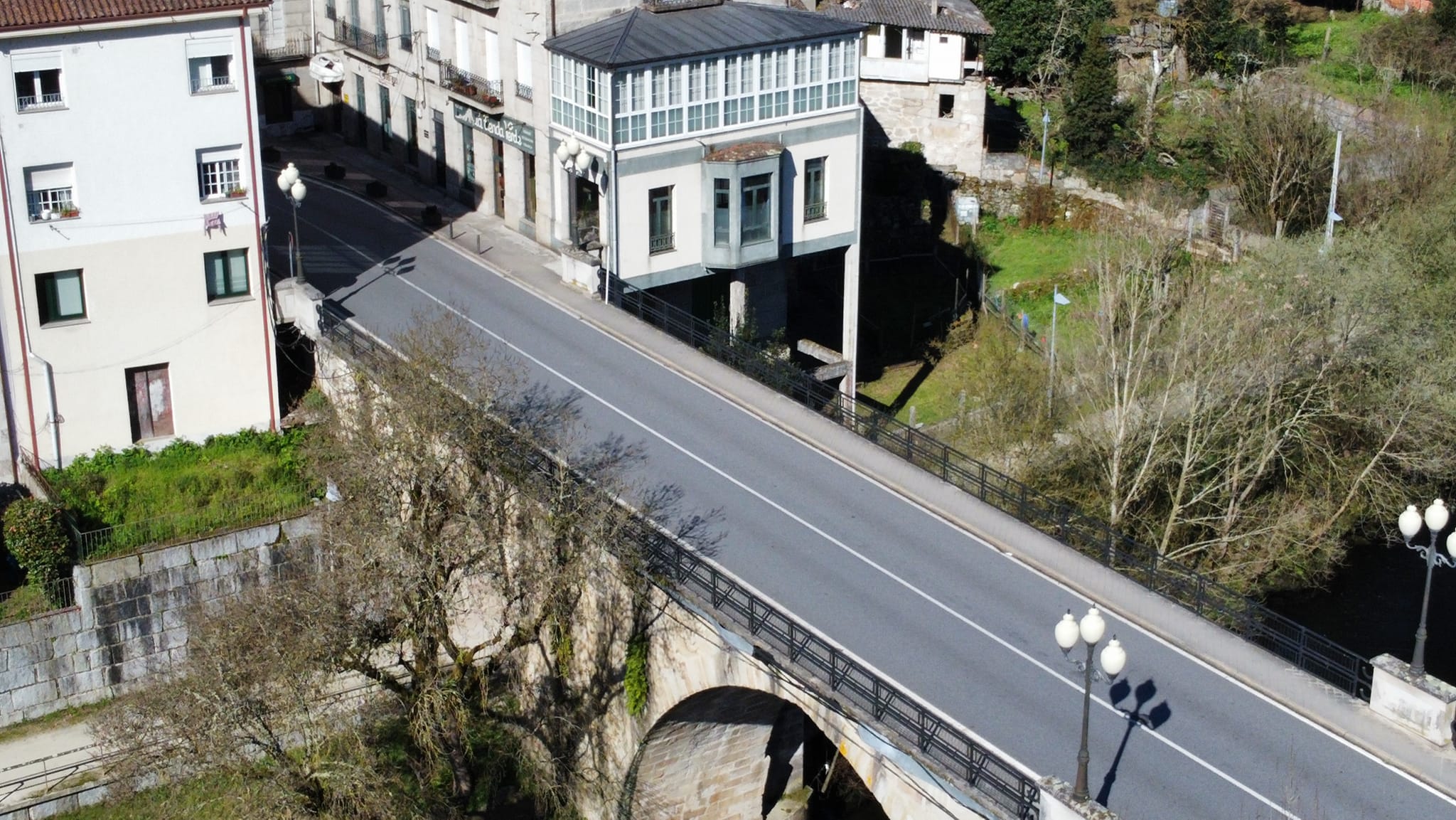 Pasando a Ponte de San Francisco, sobre o río Avia. Rúa do