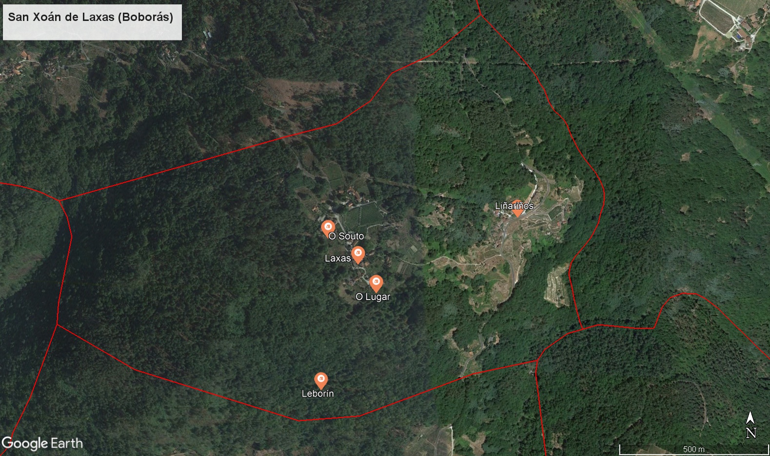 Parroquia de San Xoán de Laxas. Boborás. Lugares da parroquia. Google Earth.