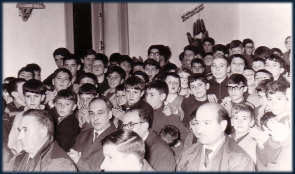 Grupo de alumnos nun acto no instituto Laboral de Ribadavia. Anos 60.