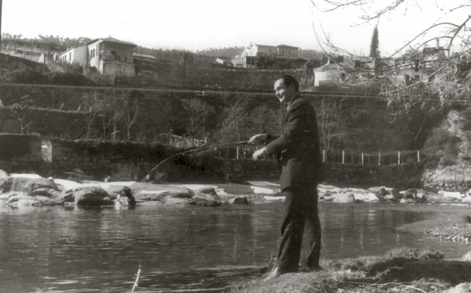 Eu creo que Manolo Portela pescaba as troitas dormindo ou en soños...neste caso de traxe e corbata no río Avia e sacando unha troita de medida. Tiña imán na cana...No fondo sabía "leer moi ben o río", e tamén sabía que estaba a comer a troita en todo momento...Logo o demais xa iba en función deses parámetros.Vín moitos pescadores ou pescos e troiteiros. Para mín Manolo foi o "troiteiro" por definición. Por certo troiteiro, en tempos, é o que pescaba troitas pero non vivía desa pesca... Logo había pescos (simples afeicionados) e pescantíns (vivian desa pesca...).