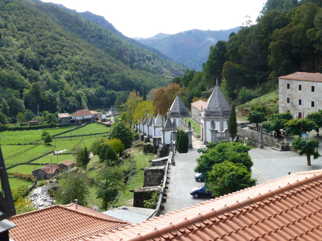 O viacrucis do santuario. Por certo moi espectacular. O fondo o río Peneda.