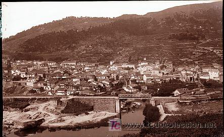 Vista xeral de Ribadavia coa ponte do tren en primeiro plano.