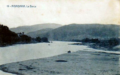 Outra vista da Barca pero o revés. O río Avia desembocando no río Miño. O fondo a dereita Francelos. Conta Álvaro e Menacho das anguías que había na zona. Conto eu que nesa zona collín a miña primeira troita no ano 1968. Logo chegou o encoro de Frieira e foisa toda esta zona a peor vida, xa que é a cola, pero acabarónse as anguías, os salmóns, as lampreas e os sables...unha magoa.