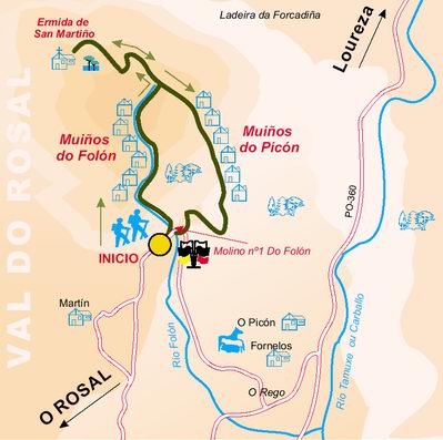 Esta será a andaina polos : Muíños de Folón e Picón no Rosal.
