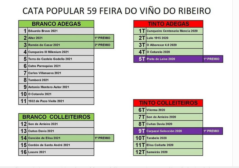 primeiro premio dos viño branco dos colleiteiros. ¡Si señor!.