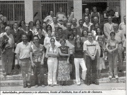---------Ribadavia LR. Tras "cinco décadas de ensino, entrega e agarimo" - según el eslogan empleado por el propio centro-, el IES O Ribeiro ponía ayer el punto y final de los actos conmemorativos de su medio siglo de existencia. Toda una vida en la que la historia la escribieron los casi 5000 alumnos y 460 profesores que en estos años pasaron por sus aulas. Una historia que, como recordó el director, Francisco Lamas, en el acto de clausura, arrancó en el curso 1953-54, cuando el entonces instituto laboral agrícola nacía en el edificio que hoy ocupa el Museo Etnolóxico (no se trasladó a su ubicación actual hasta 1958). Los cambios experimentados en estos 50 años fueron algunos de los temas más recordados. "De ter unha relación profesor-alumno no que había que poñer o don con cada nome pasamos a ter unha gran complicidade", decía el alcalde ribadaviense, Marcos Blanco. Con especial emoción recordaba Secundino Lorenzo (profesor y Jefe de Estudios entre 1968y 1977) su paso por el centro. No en vano, para él, "os mellores alumnos que tiven foron os de Ribadavia, alumnos que levo no corazón, eran moi traballadores. Cando empezaba o curso en setembro tiñamos que deixarlles as tardes libres para que fixeran a vendima". Lorenzo se acordó también del que fue director durante 18 años, Julio Freijido -"tiña que estar el aquí hoxe- y de las diferencias de su época con la actual. "Hoxe tendes una biblioteca fora de serie, pero no 73 pedimos ós distintos departamentos unha lista cos libros máis imprescindibles e con ela empezamos a facer unha biblioteca" También el delegado de Educación, Felipe Ferreiro y el director general de centros, Ernesto González, destacaron la historia del instituto -descubrieron una placa conmemorativa y excusaron la asistencia del conselleiro de viaje en Londres. Por su parte el director, Francisco Lamas, quiso destacar la actualidad del instituto, uno de los ocho centros adscritos al plan "Globe" de concienciación con el medio ambiente, e implicado en la defensa del idioma gallego.