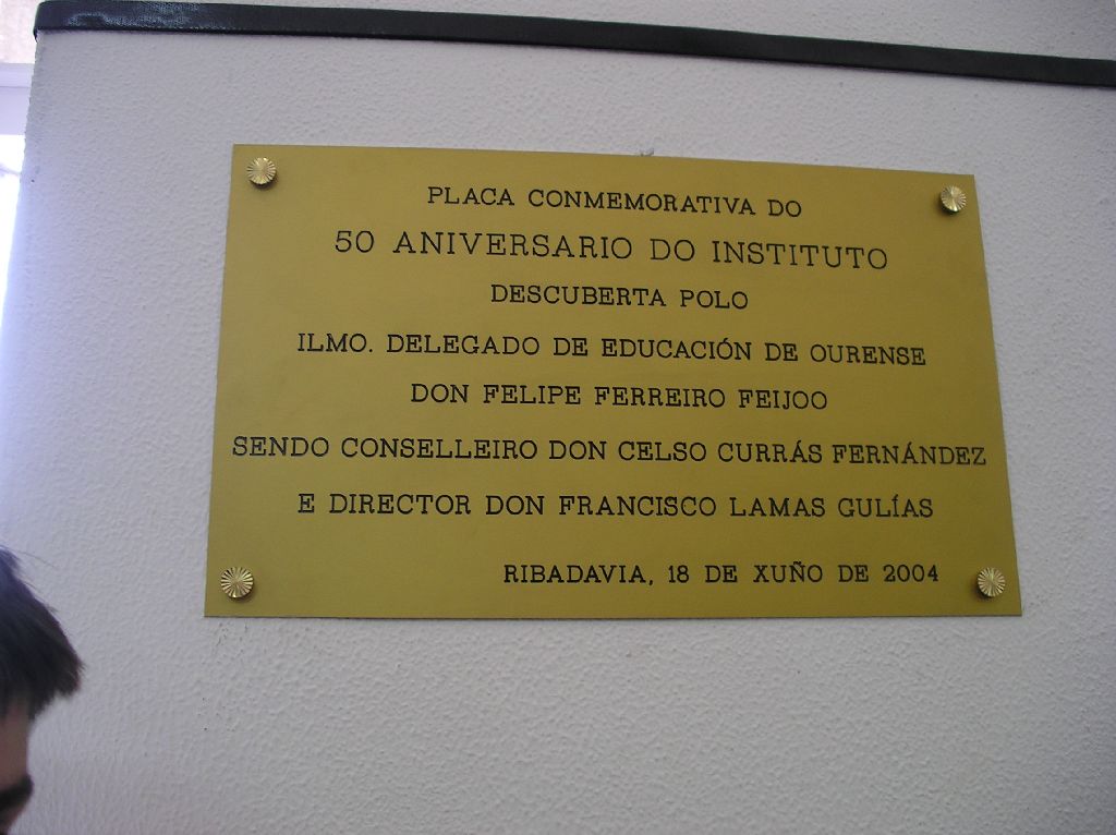 Placa conmemorativa 50º aniversario del IES O Ribeiro. Ribadavia. Ourense.2004