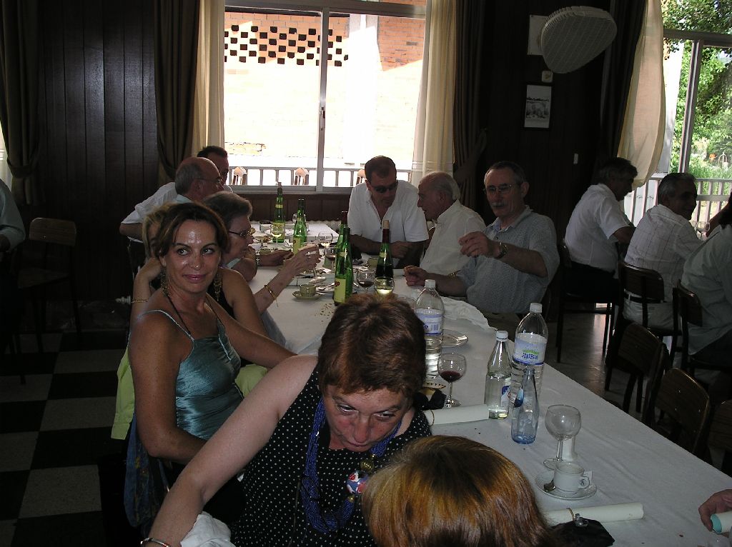 Compañeros entrañables del IES O Ribeiro, Ribadavia-Ourense: al fondo Alfonso Soto (Fon, reciente ganador del premio de carteles de la Feria del vino de Ribadavia 2004, hijo de Braulio Soto, amigo y ex-alumno) , Manuel ex-alumno que anda por Oural, Braulio Soto (está hecho un chaval con 83 años...), Celso rey, Roberto Fernández. En primer plano Sita (Orosia) y Conchita Cachafeiro.