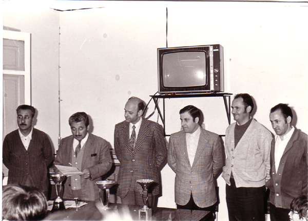 Outra fotografía histórica, entrega do Campeonato de Pesca da Troita en Ribadavia, Sobre 1970, de esquerda a dereita Quico Bouzas o pai de Mª José, agora me entero,(falei moito con el, por eso da pesca, da que salín namorado na miña estancia no instituto), Gerardo Álvarez, o alcalde Victor López Quijada, Jose Luis Casasnovas, Manolo Portela e Jesús Gómez.