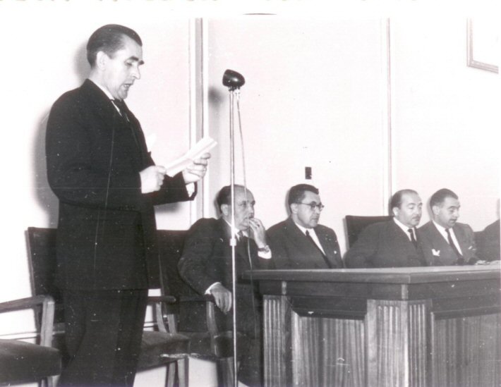 O acto de inauguración do actual instituto O Ribeiro en Ribadavia. Dando o discurso o alcalde de Ribadavia D. Joaquin Robla.