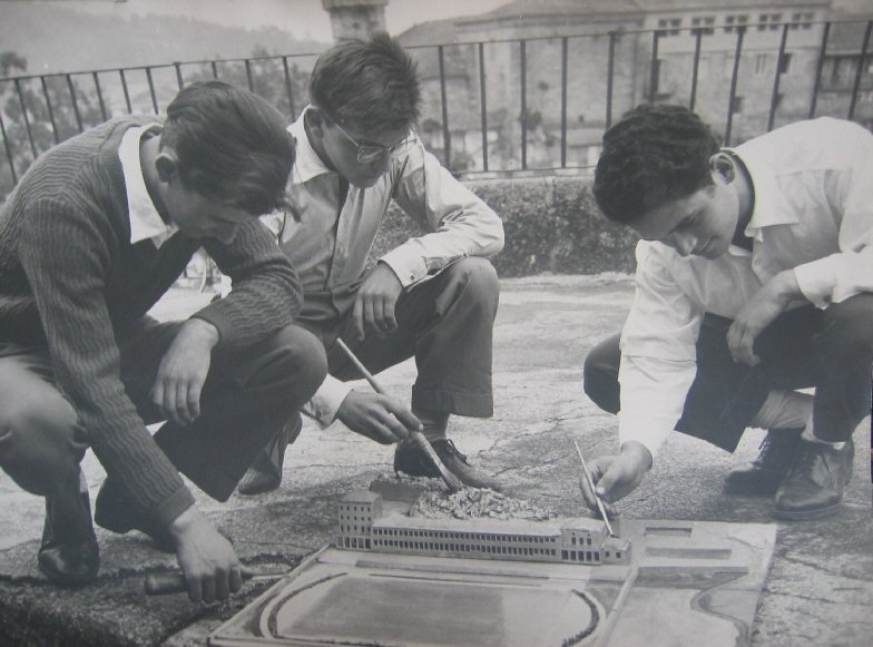 Maqueta feita polos alumnos que aparecen na fotografía nos anos 60.
