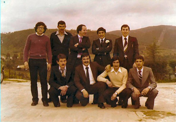 pe de esquerda a dereita: Paco "Catalan", Fidel, Carlos Almuiña,