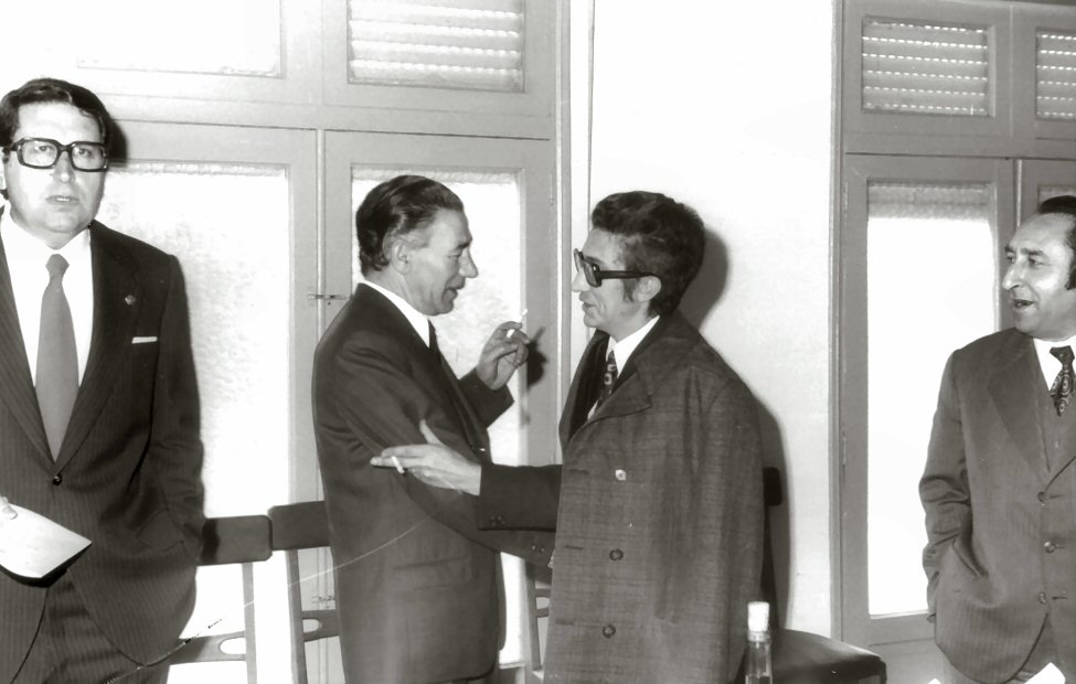 1974. Entrega de una placa al padre de Miriam. En la fotografía entre otros el alcalde de Ribadavia y Braulio que pertenecia a aquella coroporación.
