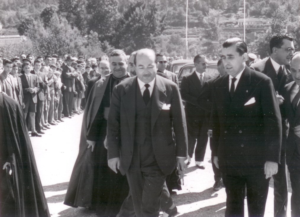 El Ministro Rubio, con el Alcalde de Ribadavia Joaquín Robla. Detrás Monseñor Temiño.