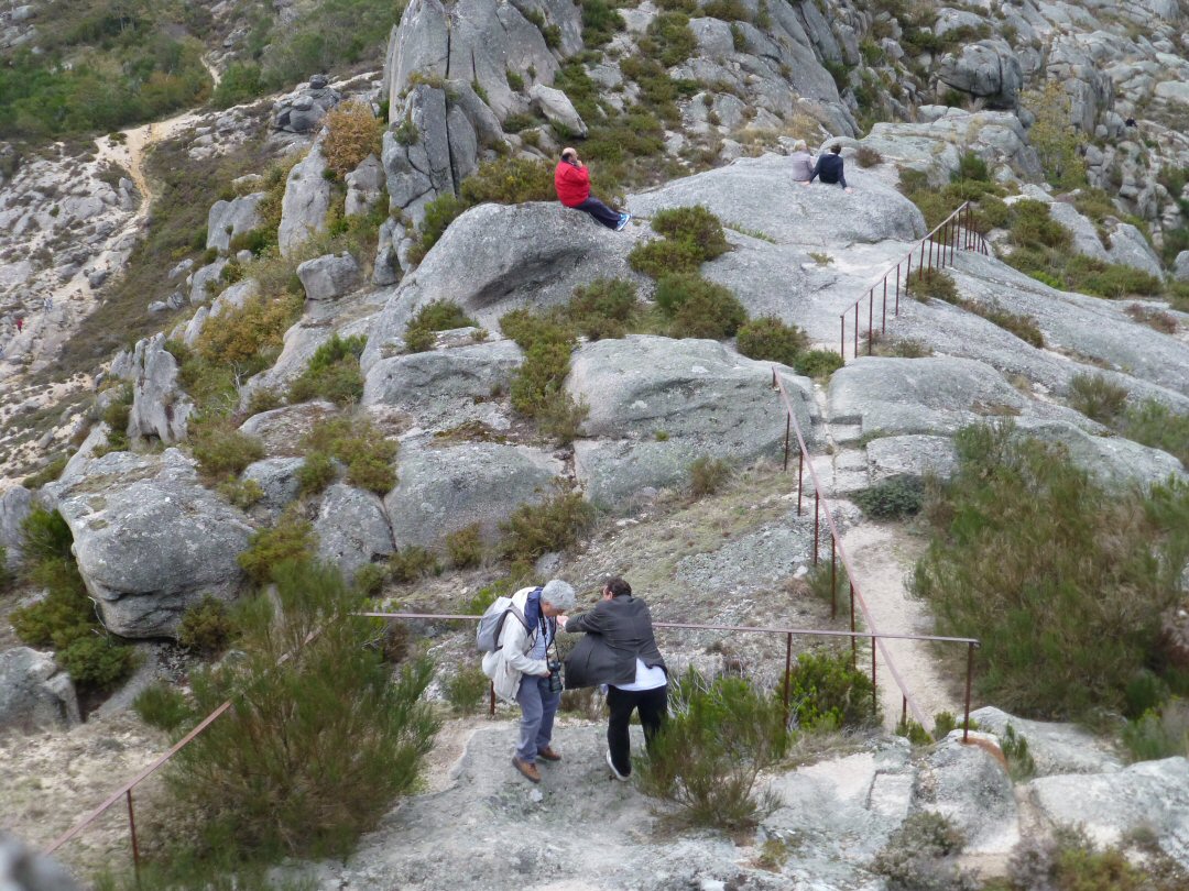 A volta de subir o Castelo xa vedes como seguía o vento zoando, ver a chaqueta do Cajide e observar a imaxen, non ten desperdicio...O fondo un compañeiro pensando, un bon sitio para meditar e unha compañeira meditando...
