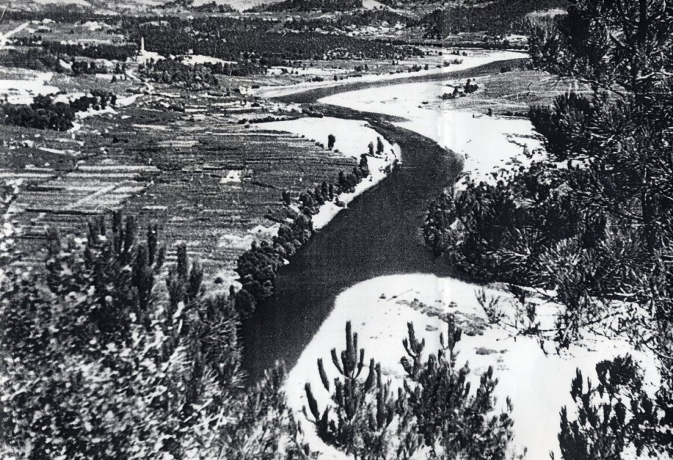 Hai unha fotografía no que se ve perfectamente o fondo o estreito de Castrelo antes de facer o encoro.