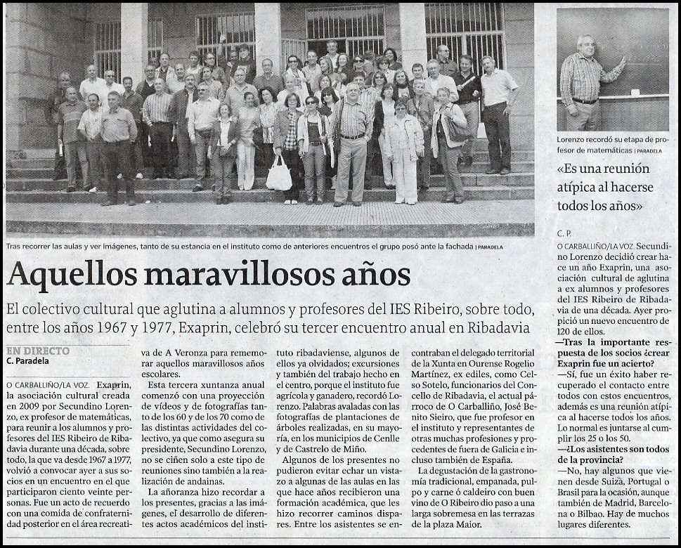 III reunión de alumnos e profesores década 1967-1977. I. Ribadavia-Ourense