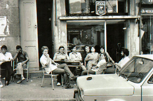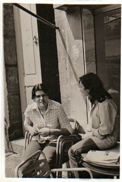 no exterior do "Kopa", na terracilla , estàn Celsa, e Manoli,