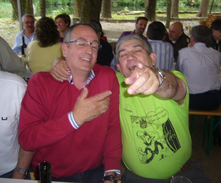 Pinal e Lino. Menuda camiseta a do Lino, xa vedes por diante o que pon "Do tinto non me arrepinto e do blanco non me espanto Glop Glop..." veredes por tras...