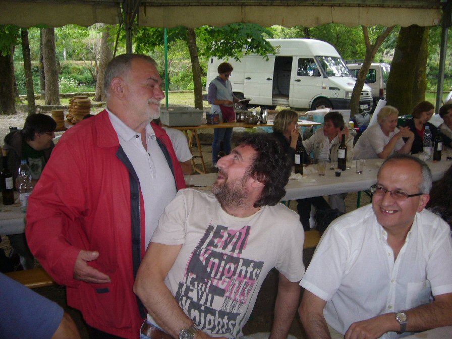 O xesto de Puga non deixa lugar a dúbidas...Na fotografía está con Jesús Afonso e Alejandrino Carrera que lle rien sabe Deus o qué...